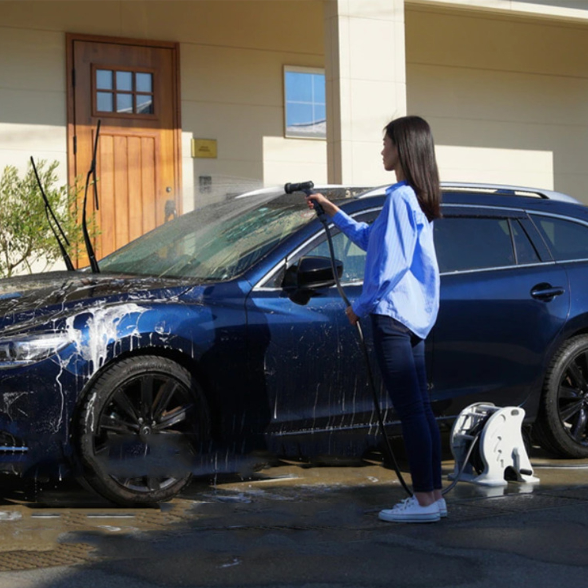 Cuộn vòi tưới nước này sử dụng "Ống xoắn" có bề mặt nhẵn với cấu trúc xoắn ốc giúp chống xoắn và giảm dính ống. Ống có đường kính trong 12 mm nên có thể sử dụng với tốc độ dòng chảy lớn hơn ống thông thường. Tốc độ dòng nước của vòi tưới nước có thể được điều chỉnh bằng cần gạt trên tay cầm. Hình dạng nước có thể được chuyển đổi giữa bốn loại: hình vuông, hình thẳng, bình tưới nước và vòi hoa sen. Các loại vòi có thể lắp là vòi ngang (đường kính vòi 14-18 mm) và vòi thông dụng gia đình (đường kính vòi 14-18 mm).