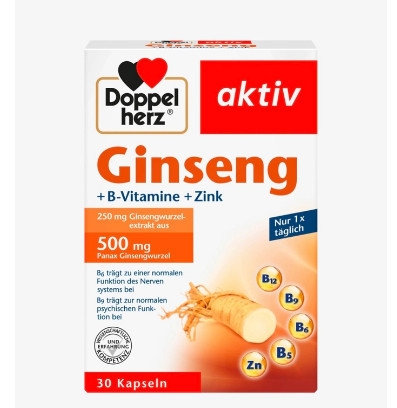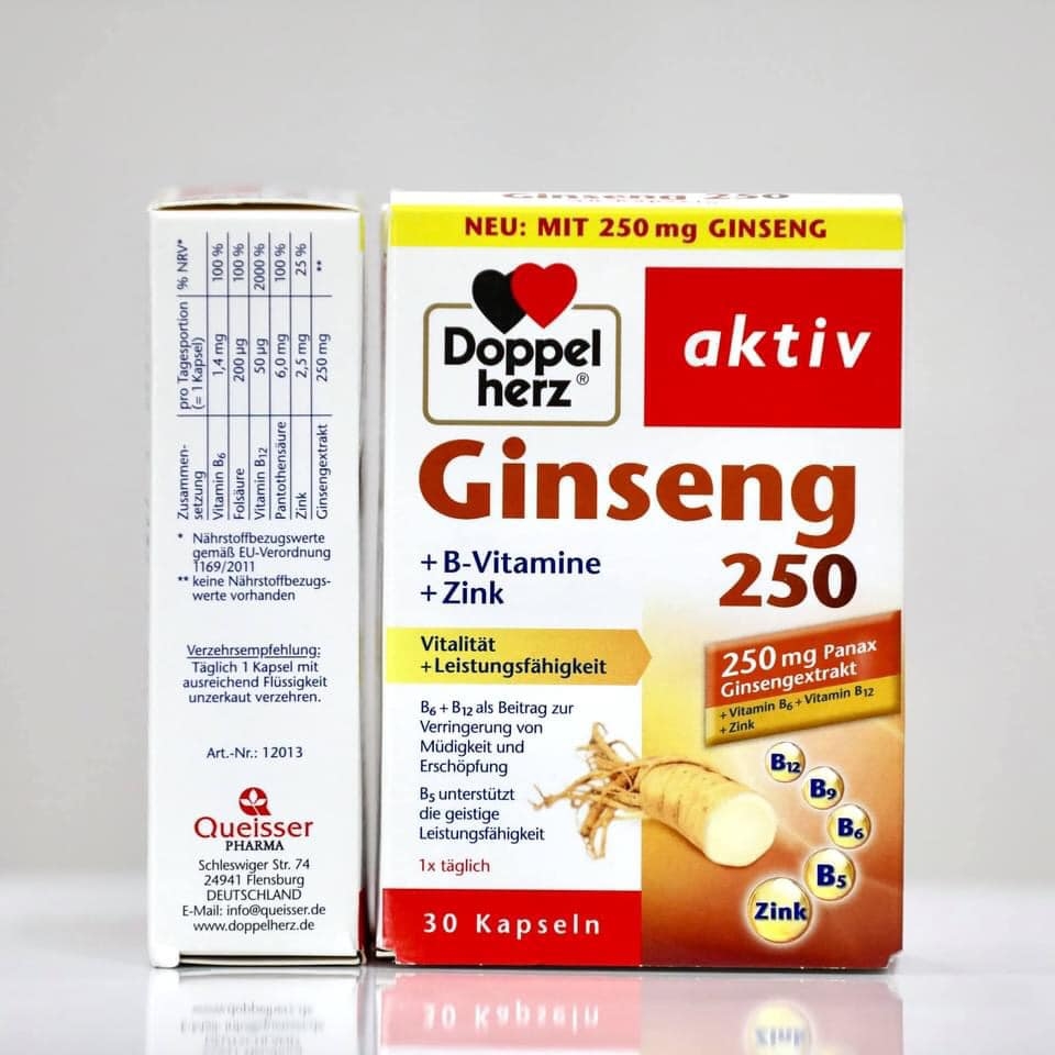 Doppelherz Aktiv Ginseng 500mg + Vitamin B + Kẽm là sản phẩm hỗ trợ tăng cường năng lượng, cải thiện trí nhớ và sức khỏe tinh thần, phù hợp cho người làm việc căng thẳng, học sinh – sinh viên cần sự tập trung cao.