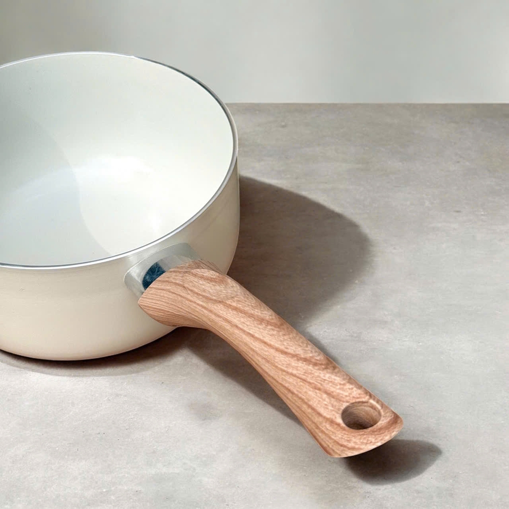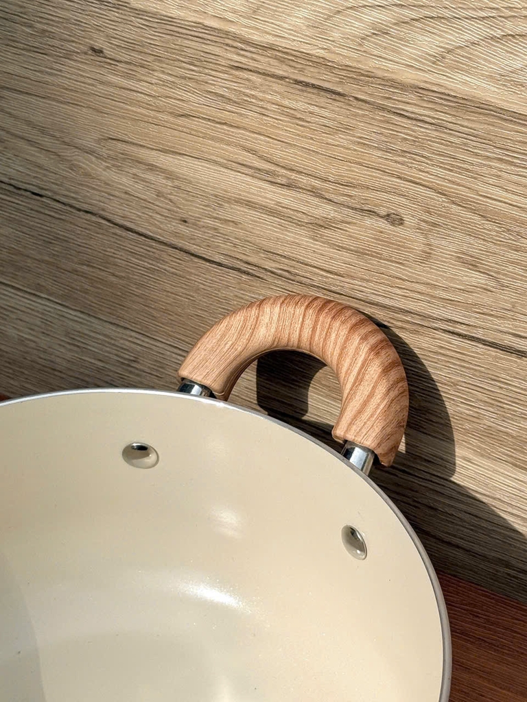 Cán gỗ cầm chắc tay, chống nóng tốt
