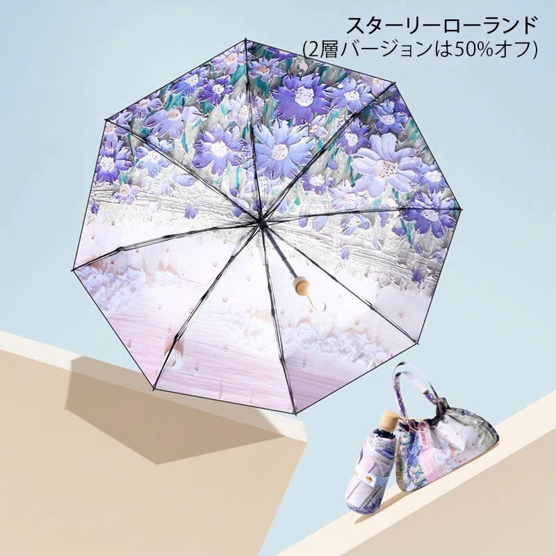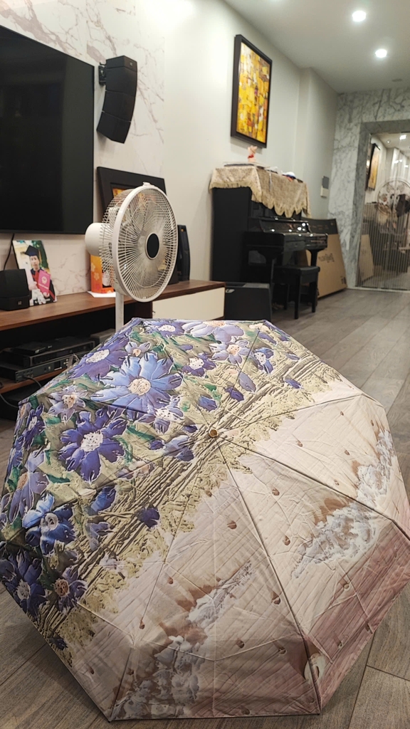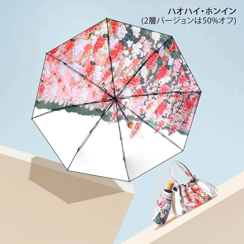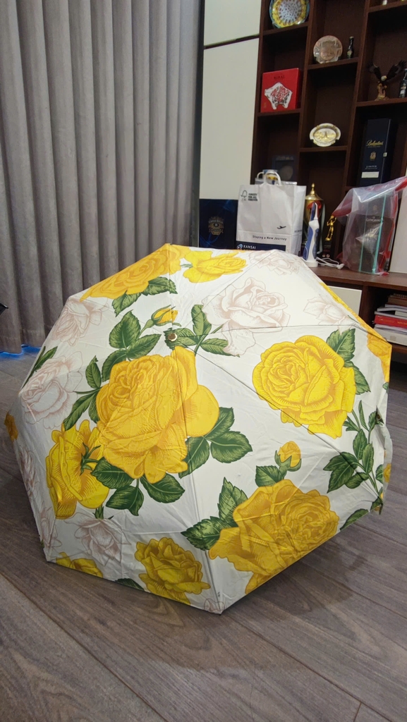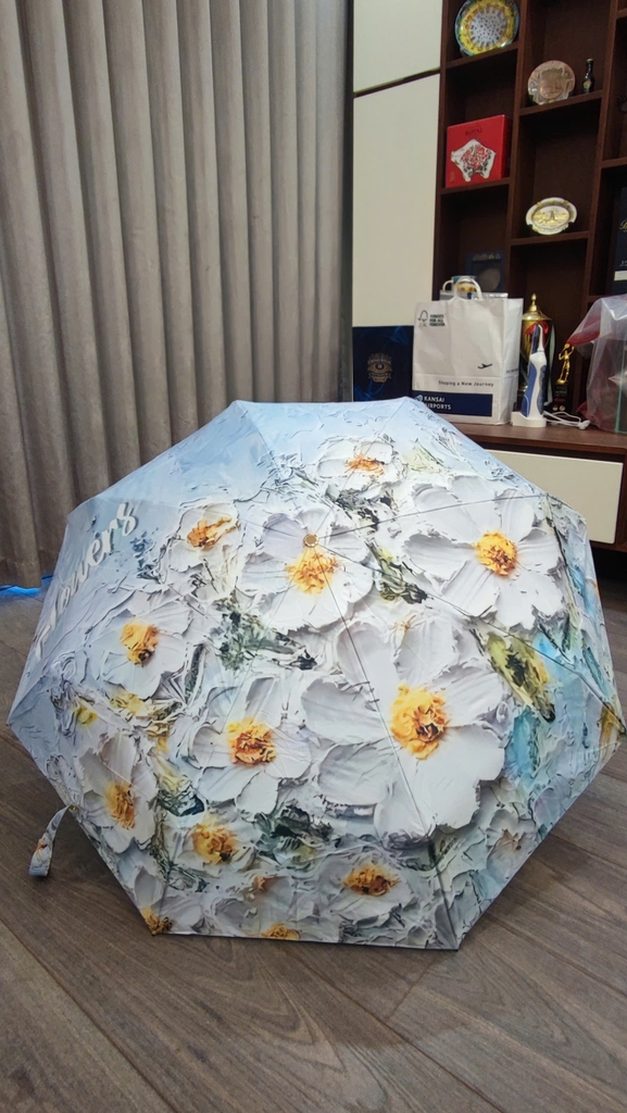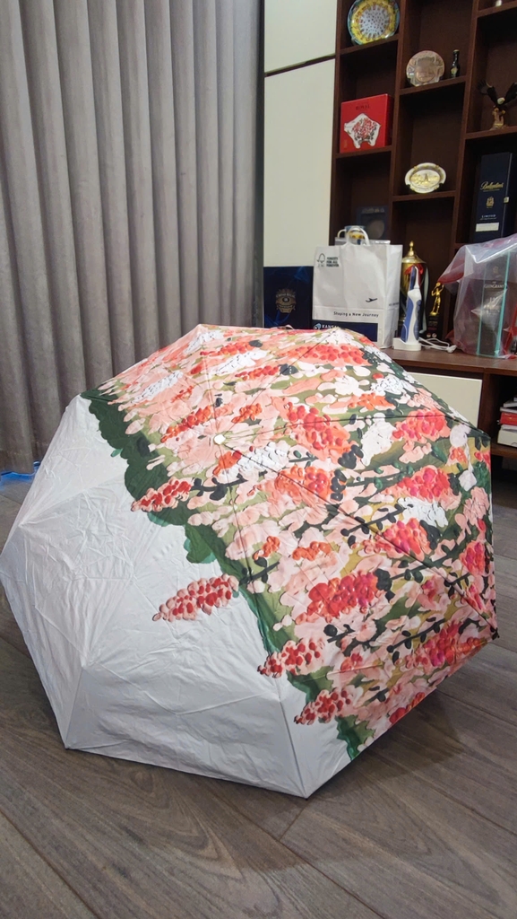 Chiếc ô được lấy cảm hứng từ phong cách mỹ thuật Nhật Bản, nổi bật với hoa văn in sắc nét, phối màu hài hòa. Thiết kế 2 mặt hoa khác nhau, tạo cảm giác mới lạ và sang trọng ở mọi góc nhìn, phù hợp cho người yêu cái đẹp và sự tinh tế.