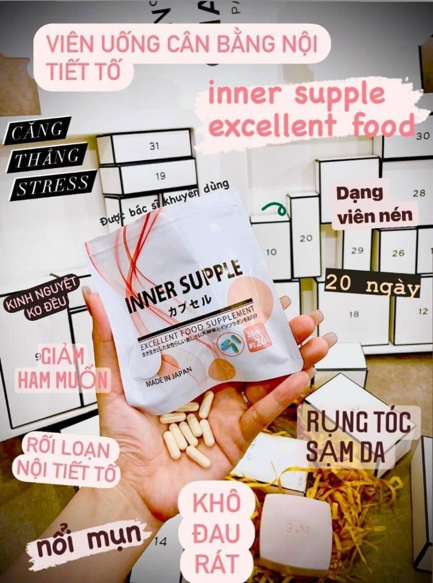 Viên uống cân bằng nội tiết tố nữ Inner Supple là sản phẩm đến từ Nhật Bản, được thiết kế để hỗ trợ điều hòa nội tiết tố, cải thiện sức khỏe và sắc đẹp cho phụ nữ. Mỗi gói chứa 20 viên, đủ dùng trong 20 ngày.