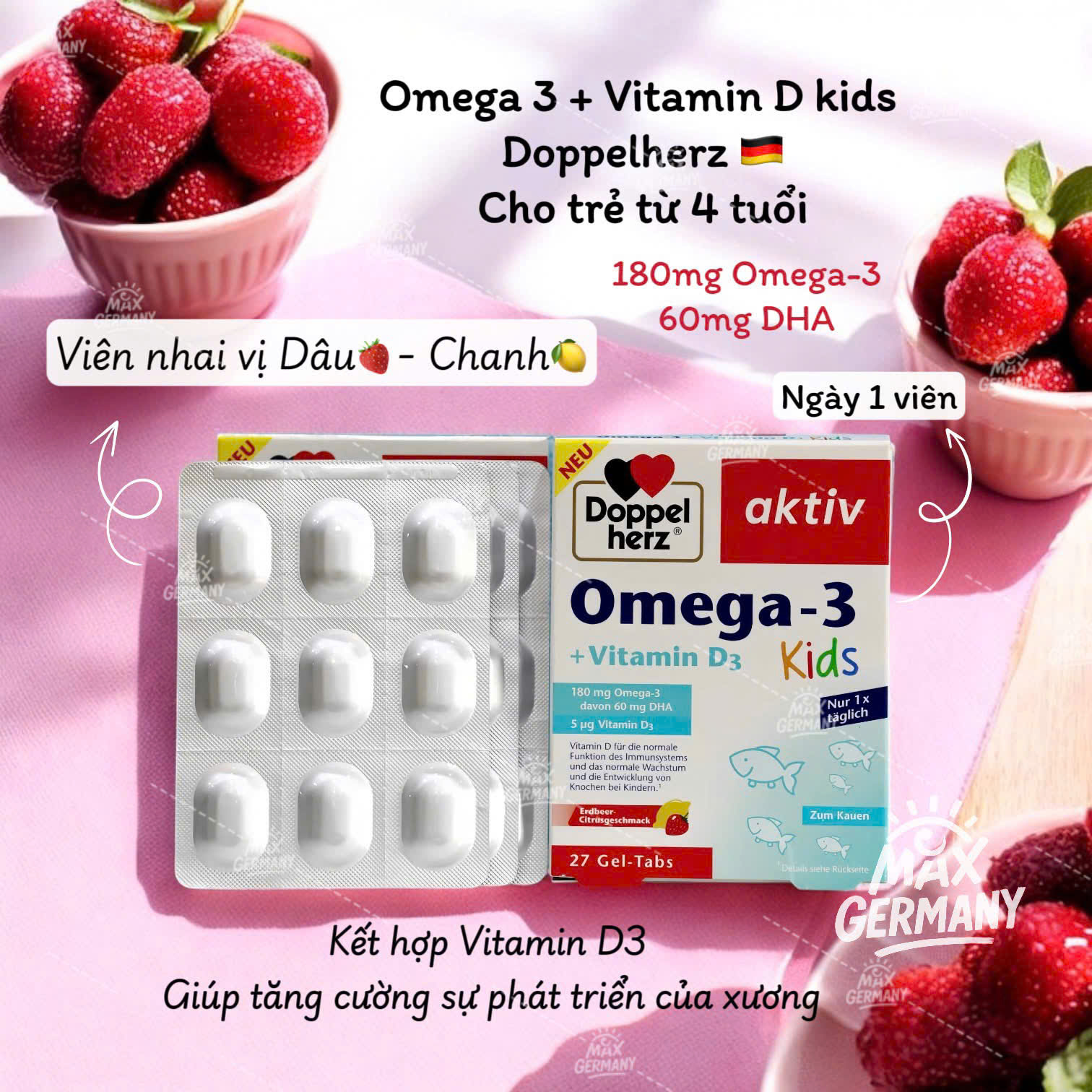 Trong giai đoạn phát triển, trẻ cần được bổ sung đầy đủ dưỡng chất để tăng cường trí tuệ và thể chất. Viên nhai Doppelherz Omega-3 + Vitamin D3 Kids là lựa chọn hoàn hảo, giúp trẻ bổ sung Omega-3 và Vitamin D3 cần thiết mỗi ngày.