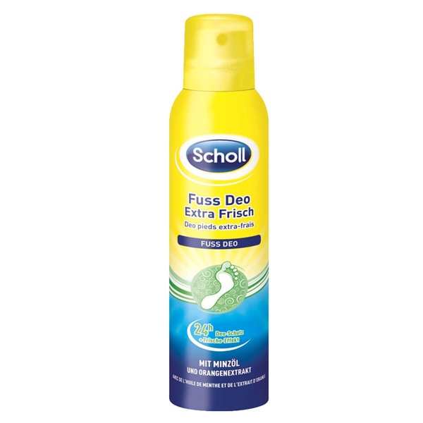 Scholl Fuß Deo Spray Fresh Step Extra Frisch 150ml là sản phẩm xịt khử mùi chuyên dụng dành cho chân đến từ thương hiệu Scholl nổi tiếng của Đức. Sản phẩm giúp loại bỏ mùi hôi chân, giữ cho da chân khô thoáng – thơm mát – sạch khuẩn suốt cả ngày dài.